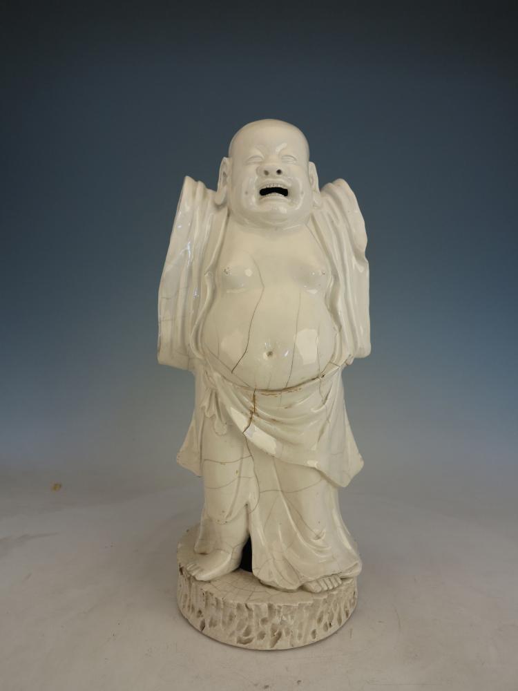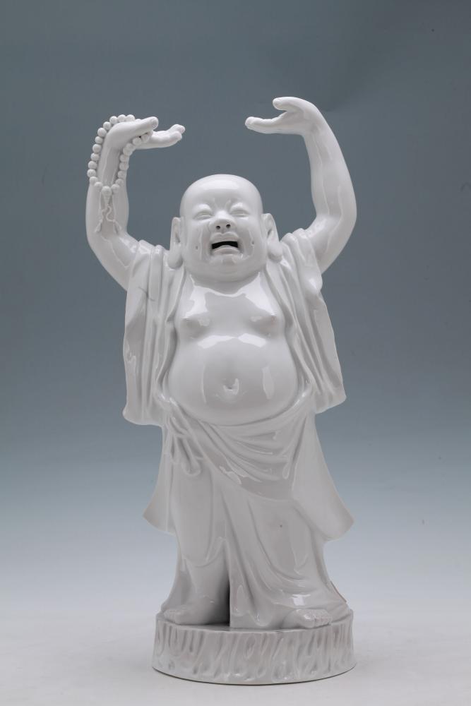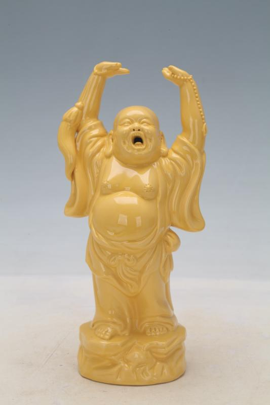 弥勒 在梵文中是大慈的意思,象征着中华民族宽容、和善、智慧、幽默、快乐的精神,也蕴含了人们对美好未来的期待。近代枫溪窑耀兴号生产的托手弥勒佛像,远近闻名。颐陶轩采用传统成型方法依样仿制。
