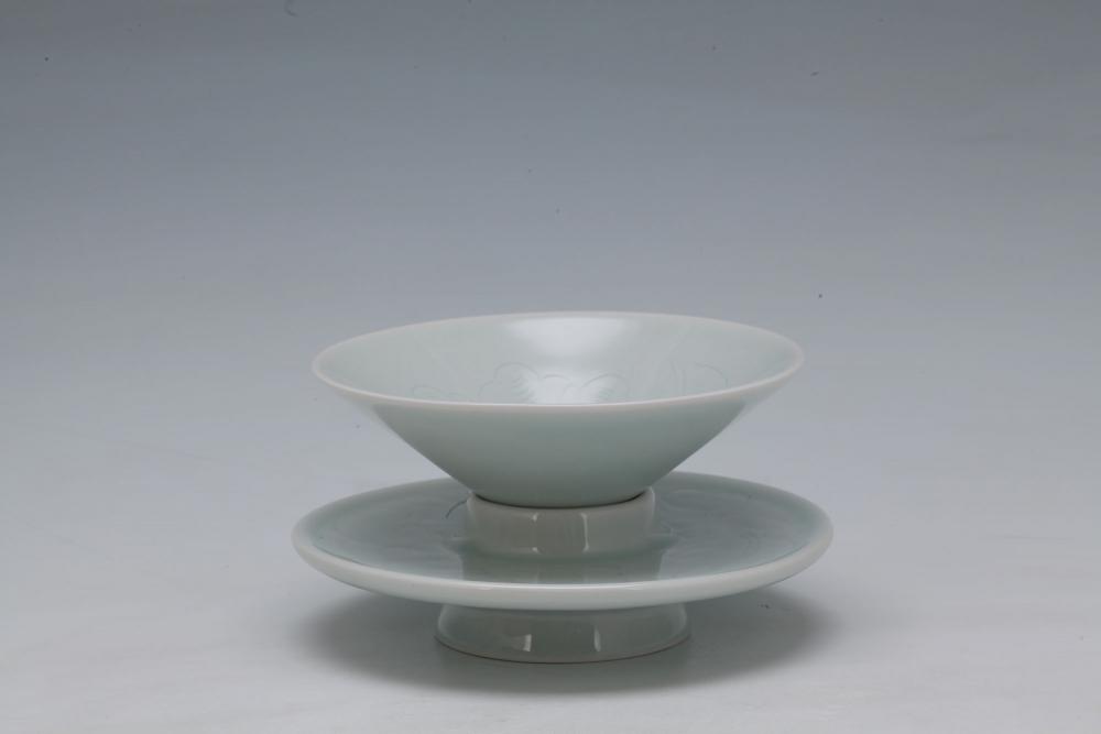 宋代潮州窑出土青白釉划花斗笠碗 其划花工艺娴熟,具有定窑风格,是本窑一大代表性产品,颐陶轩依样仿制。