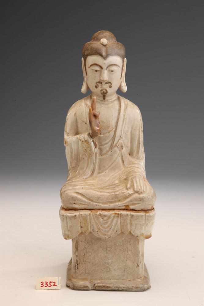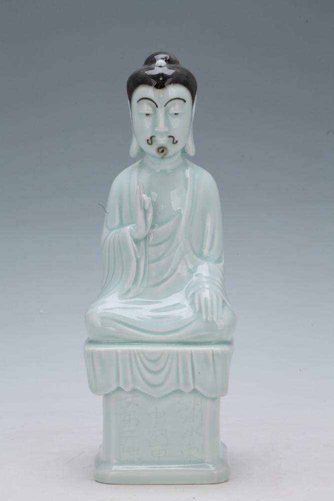 佛像与莲花炉 1922年10月,在潮州城西羊鼻冈发现宋代潮州窑四尊底座刻有铭文的佛像与莲花炉,分别藏于国家博物馆和广东省博物馆。颐陶轩依据其造型、款式进行仿制。