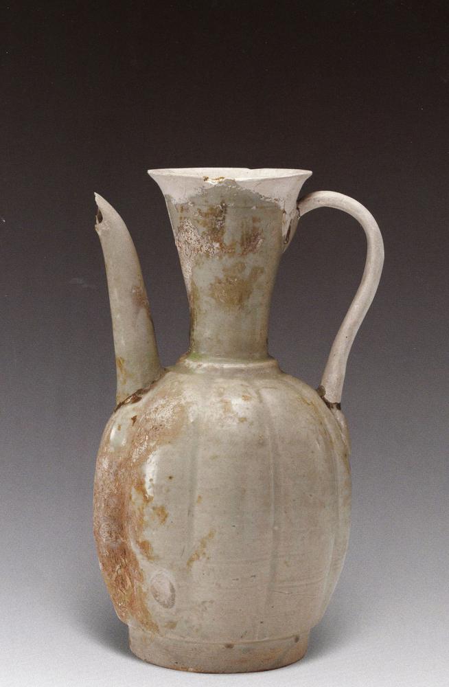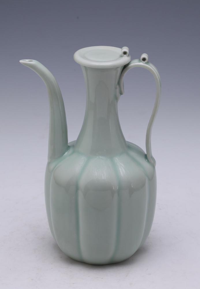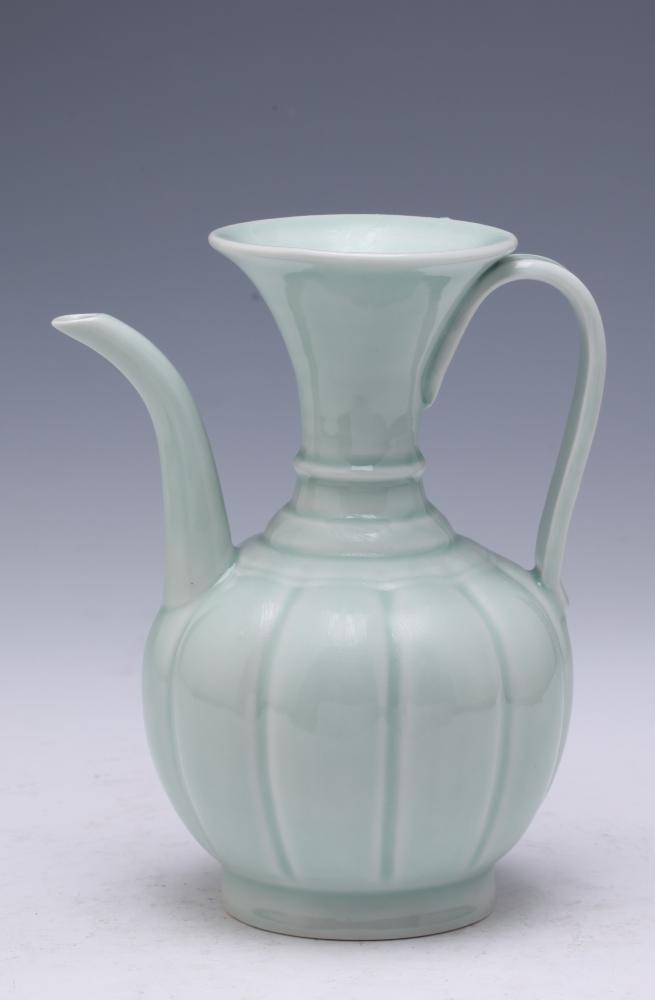 青白釉瓜棱壶 宋代水东窑位于潮州城韩江东岸的韩山西侧,也称韩山窑,笔架山窑,是宋代潮州窑的代表。颐陶轩根据窑址标本仿制出这一青白釉瓜棱壶。