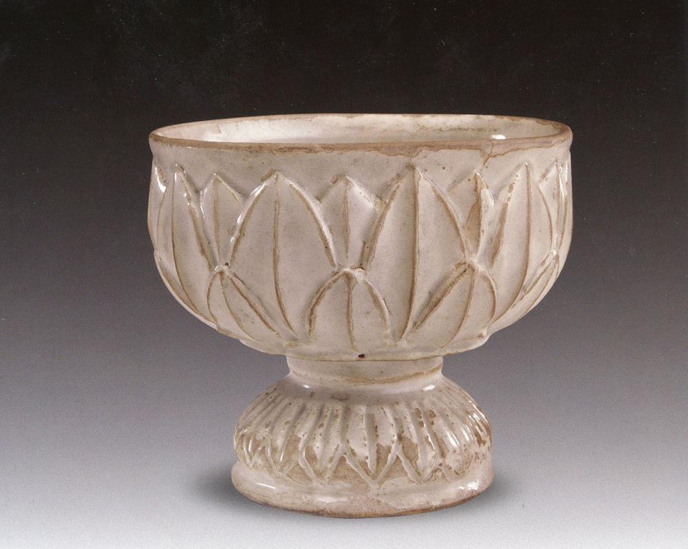 青白釉菊瓣壶 宋代水东窑位于潮州城韩江东岸的韩山西侧,也称韩山窑,笔架山窑,是宋代潮州窑的代表。颐陶轩根据窑址标本仿制出这一青白釉菊瓣壶。